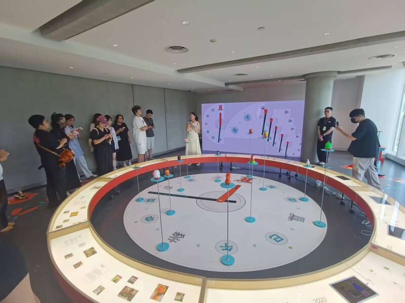走进展区,一个巨大的时钟装置映入眼帘。时钟指针停留在“丑时”时区,十二时辰时区分别对应着十二生肖的玩偶——第五届丑东西大赛的获奖商品,十二生肖灵性摆件。150个由用户制作的魔性羊毛毡作品,按照标本的方式保存陈列。从大脚丫棉拖鞋,到绿鱼拖鞋,每年丑东西大赛都会入围的鞋类单品,也通过艺术化的布展方式与观众见面。